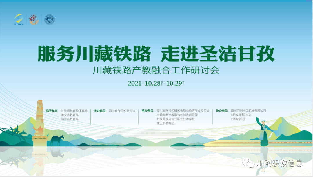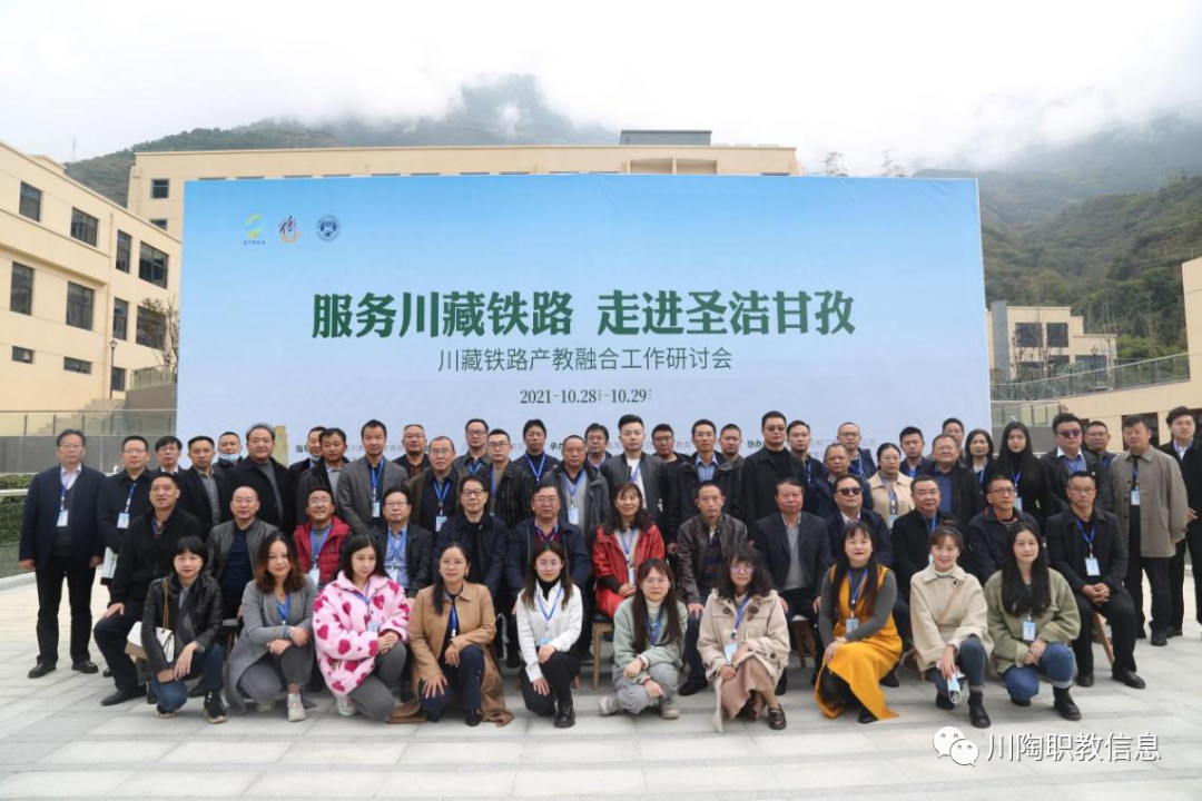 为认真贯彻中共中央办公厅国务院办公厅印发《关于推动现代职业教育高质量发展的意见》(2021.10.12)关于“围绕国家重大战略,紧密对接产业升级和技术变革趋势”有关精神,深化产教融合校企合作,加快推进四川省陶行知研究会服务川藏铁路建设的有关重点研究项目,促进以产教融合为核心的川藏铁路教育链、人才链、产业链融合创新发展。2021年10月28日,由四川省陶行知研究会主办,四川省陶行知研究会职业教育专业委员会、川藏铁路产教融合创新发展联盟(以下简称“联盟”)、甘孜藏族自治州职业技术学校、康巴职教集团承办的“服务川藏铁路 走进圣洁甘孜”川藏铁路产教融合创新发展工作研讨会在甘孜泸定顺利召开。