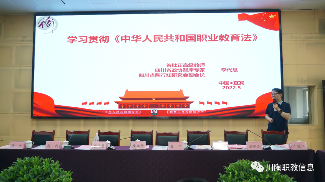 带着这些疑问,四川省政协智库专家李代慧同志分享了全国人大有关领导和专家,教育部职成司、政策法规司有关领导和专家的解读,以及自己学习《职业教育法》“要自觉站位”等心得,就各项目学校如何学习、宣传、贯彻新《职业教育法》,在“育好人、升好学、就好业”行知人才培养目标引领下如何推动和促进自身改革发展等方面提出了建议。