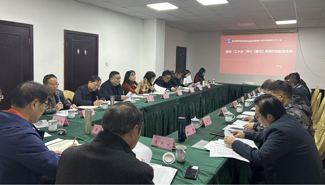 按四川省陶行知研究会要求,首先组织参会同志认真学习领会党的“二十大”精神、《关于推动现代职业教育高质量发展的意见》《关于深化现代职业教育体系建设改革的意见》精神和陶行知“爱满天下”等教育思想。