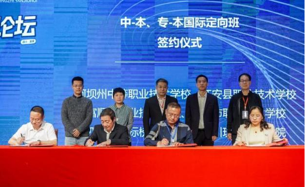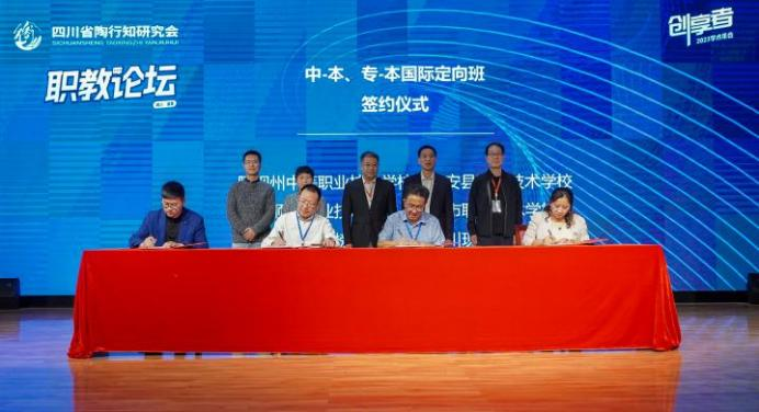 迈出国际合作交流合作新步伐,推动四川职业教育高质量发展。在现场嘉宾们的见证下,四川省陶行知研究会(职业教育专业委员会)与电子科技大学签订职业教育国际化合作研究协议;电子科技大学(继续教育学院)、阿坝州中等职业技术学校、四川省江安县职业技术学校、遂宁市职业技术学校、富顺职业技术学校、四川现代职业学院、四川国际标榜职业学 院签署了中-本、专-本国际贯通培养协议,并现场举行了签约仪式;席晓艳常务副会长向名书记/校长、名学科/专业带头人、名班主任颁发了智库专家聘书。